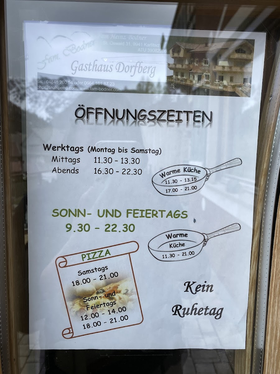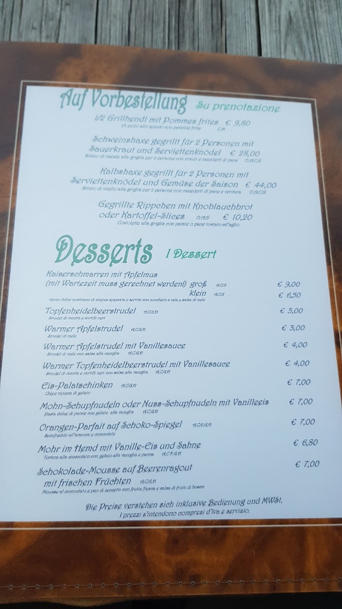 In short, the menu at Gasthaus Dorfberg is a testament to the flavors of Austria, with each dish carefully crafted to offer both comfort and authenticity. From hearty meats to lighter salads and indulgent desserts, there's something for everyone to enjoy in this charming restaurant.